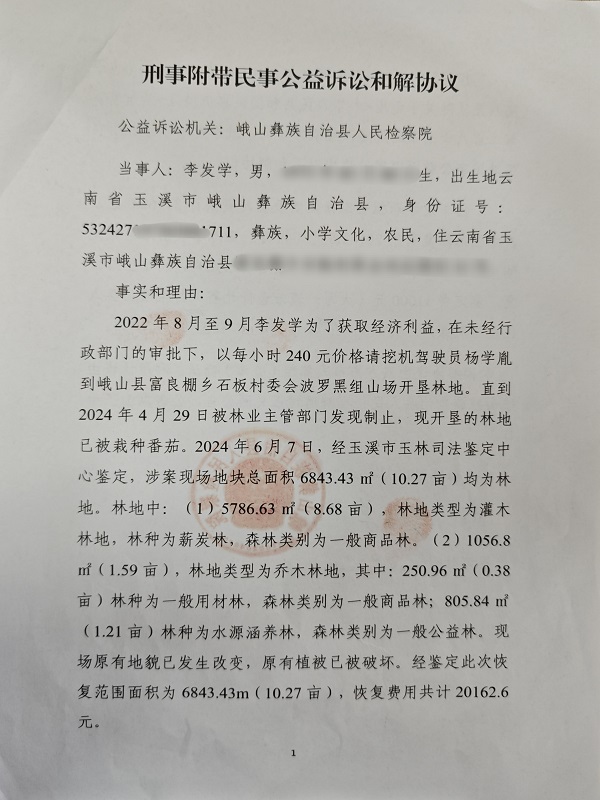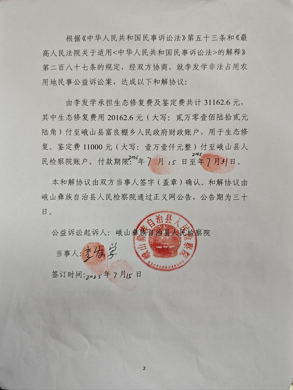 根据《中华人民共和国民事诉讼法》第五十三条和《最高人民法院关于适用<中华人民共和国民事诉讼法>的解释》第二百八十七条的规定,经双方协商,就李发学非法占用农用地民事公益诉讼案,达成以下和解协议: