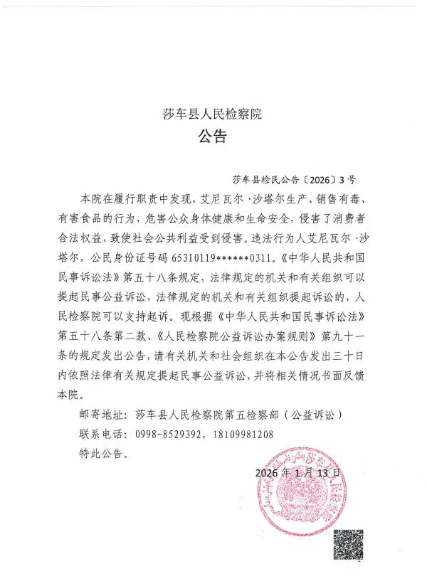 莎车县检民公告〔2026〕3号