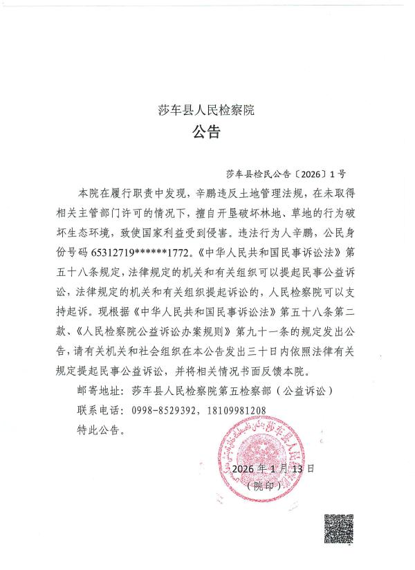莎车县检民公告〔2026〕1号