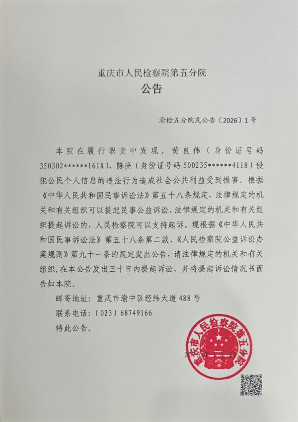 渝检五分院民公告〔2026〕1号