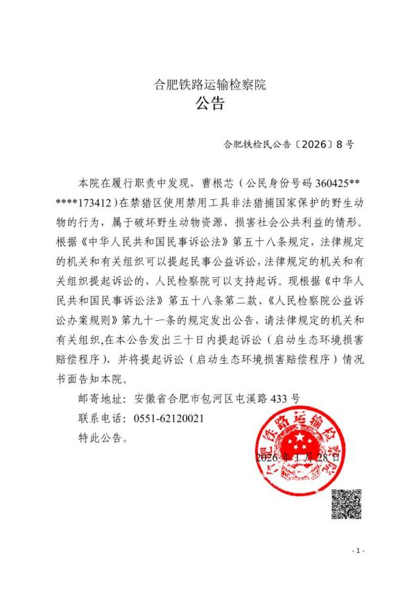 合肥铁检民公告〔2026〕8号