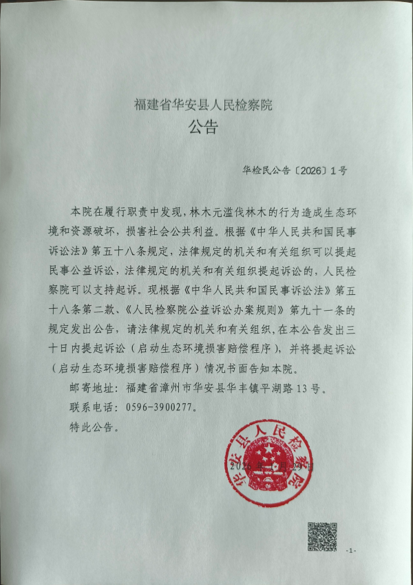 本院在履行职责中发现,林木元滥伐林木的行为造成生态环境和资源破坏,损害社会公共利益。根据《中华人民共和国民事诉讼法》第五十八条规定,法律规定的机关和有关组织可以提起民事公益诉讼,法律规定的机关和有关组织提起诉讼的,人民检察院可以支持起诉。现根据《中华人民共和国民事诉讼法》第五十八条第二款、《人民检察院公益诉讼办案规则》第九十一条的规定发出公告,请法律规定的机关和有关组织,在本公告发出三十日内提起诉讼(启动生态环境损害赔偿程序),并将提起诉讼(启动生态环境损害赔偿程序)情况书面告知本院。
