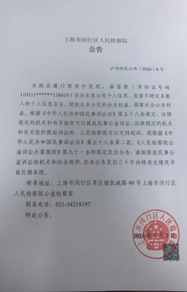 沪闵检民公告〔2026〕9号