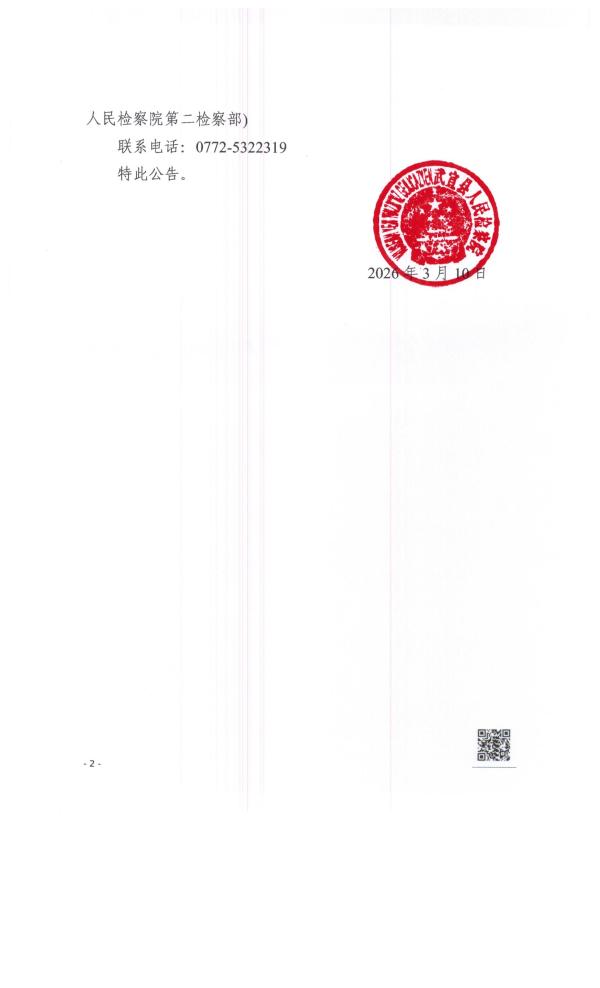 邮寄地址:广西来宾市武宣县武宣镇城东路144号(武宣县人民检察院第二检察部)