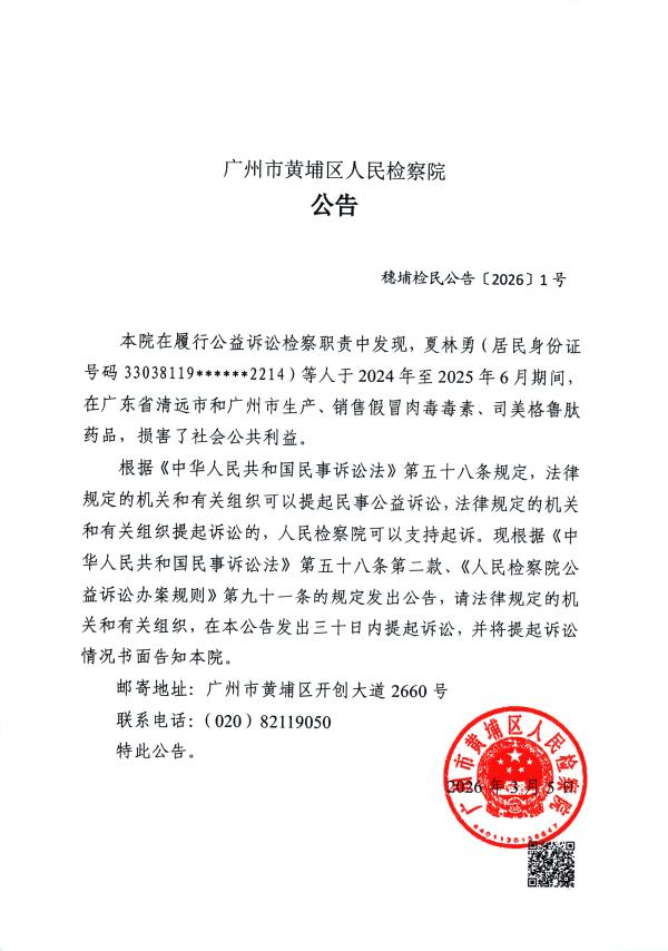 本院在履行公益诉讼检察职责中发现,夏林勇(居民身份证号码33038119******2214)等人于2024年至2025年6月期间,在广东省清远市和广州市生产、销售假冒肉毒毒素、司美格鲁肽药品,损害了社会公共利益。